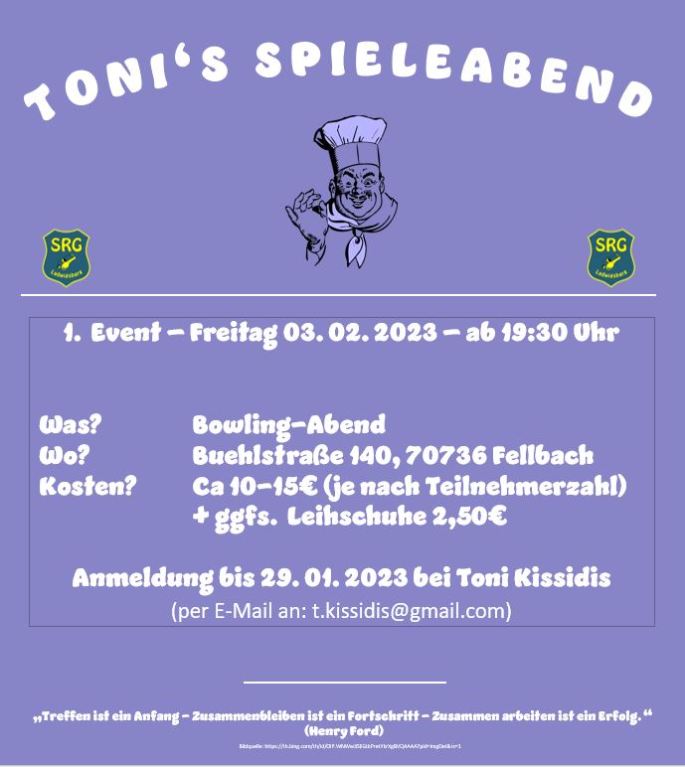 Für eine bessere Planung melde dich bitte bis zum 29.01.2023 per E-Mail bei Toni an.