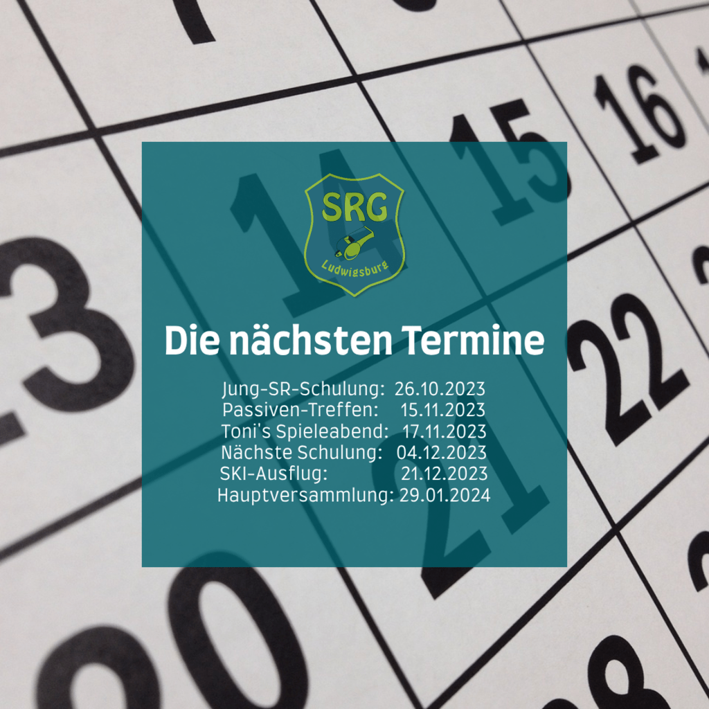 Nach dem Jahreswechsel findet am 29.01.2024 die Hauptversammlung der SRG Ludwigsburg statt. Hierzu wird noch eine separate Einladung folgen. Tragt euch den Termin schon einmal in den Kalender ein.