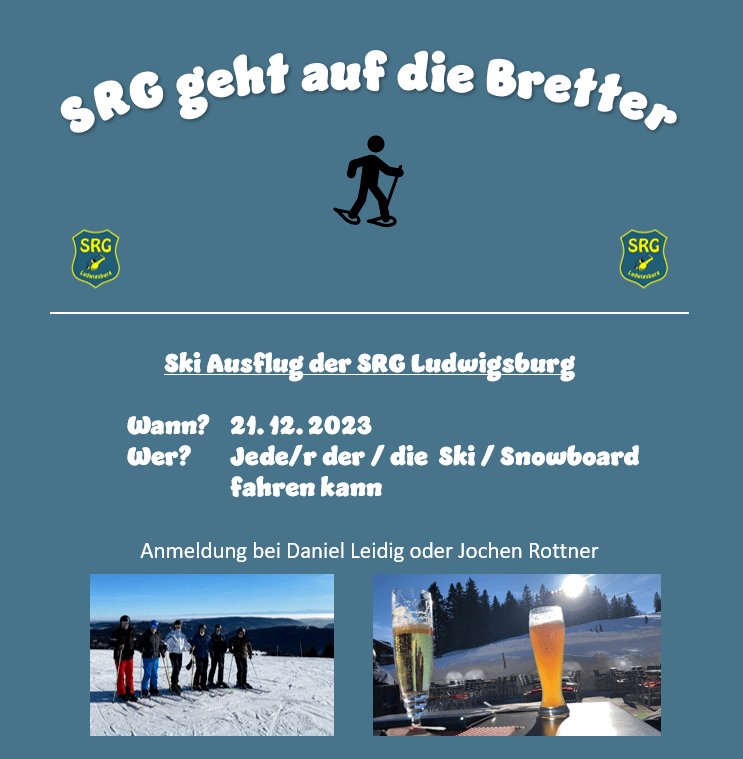 Wie gestern bereits angekündigt, veranstaltet die SRG Ludwigsburg einen Ski-Ausflug.