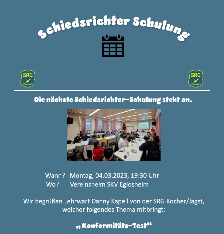 Einladung zur Schiedsrichterschulung der SRG Ludwigsburg