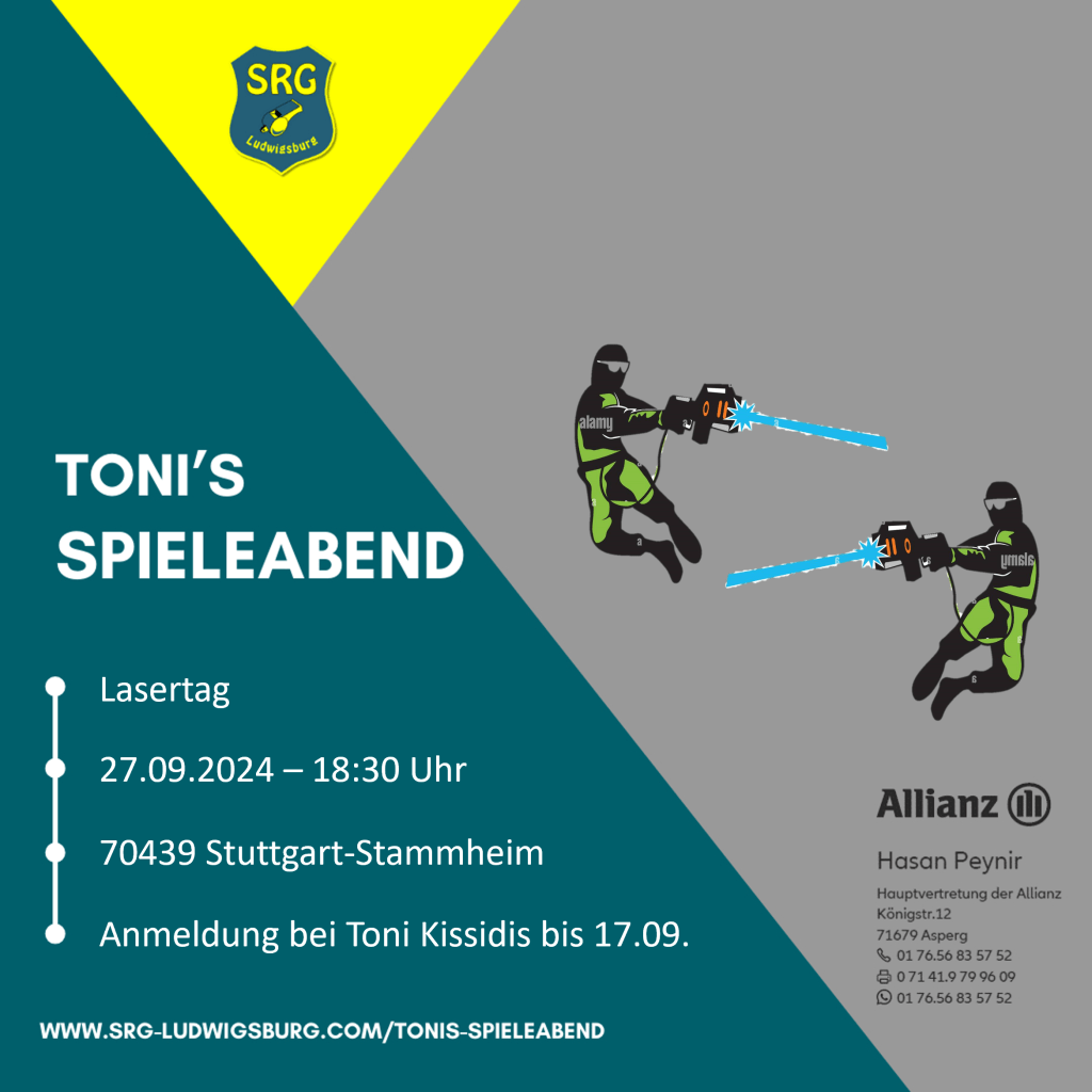 Am Freitag, 27.09.2024 ab 18:30 Uhr treffen wir uns in Stuttgart Stammheim zum Lasertag spielen.