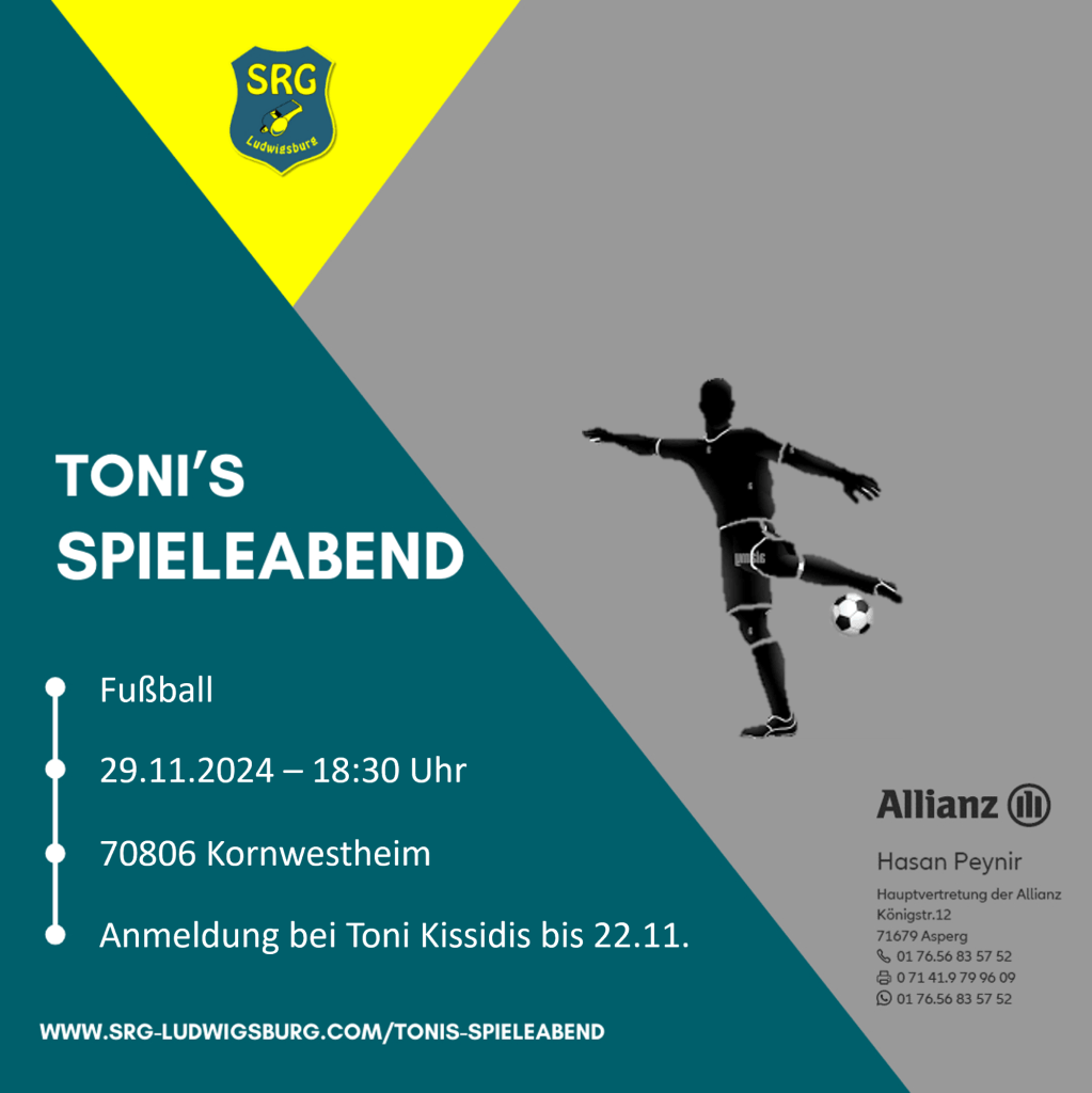 Toni‘s Spieleabend geht in die nächste Runde – Fußball in Kornwestheim zum Jahresabschluss