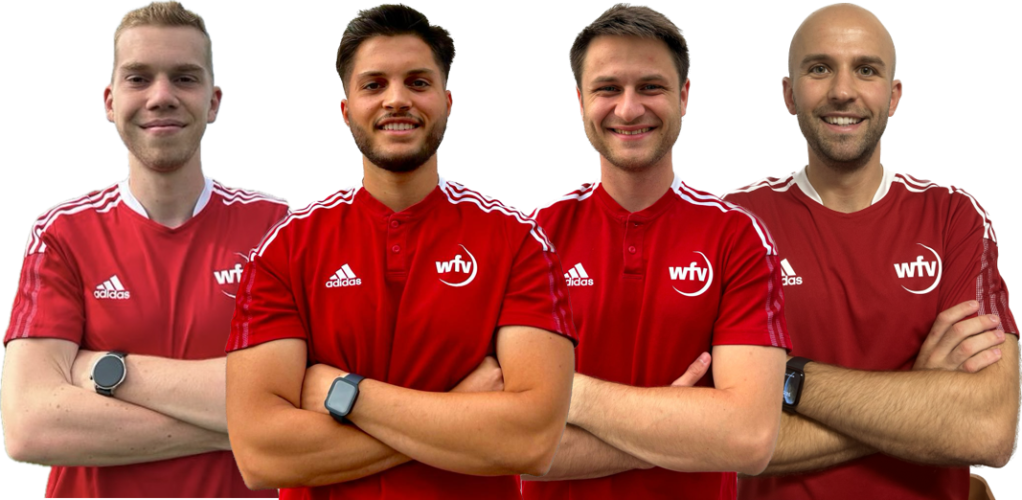 Um den Anforderungen der jeweiligen Spielklassen gerecht zu werden, trainieren die Schiedsrichter in einem individuell von Valerio, Niklas, Markus und Daniel B vorbereiteten Training.